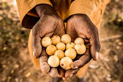 Hands holding fruits.